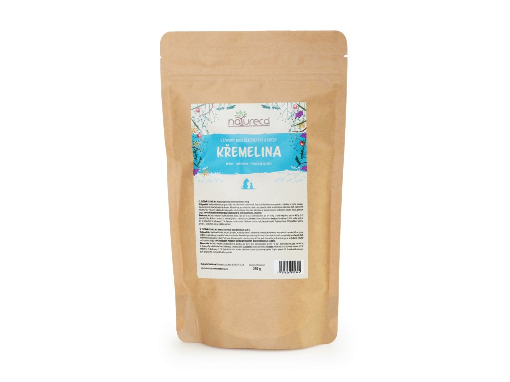 Účel použití: Doplňkové krmivo pro psa i kočku. Naturální detox a přírodní odčervení. Protože je křemelina nerozpustná a v tekutině se rychle usazuje, doporučujeme ji zamíchat zvířeti do krmiva. Křemelina pro zvířata je bez chuti a bez zápachu, takže neovlivní jeho obvyklou chuť. Nadměrné množství tělo vyloučí.