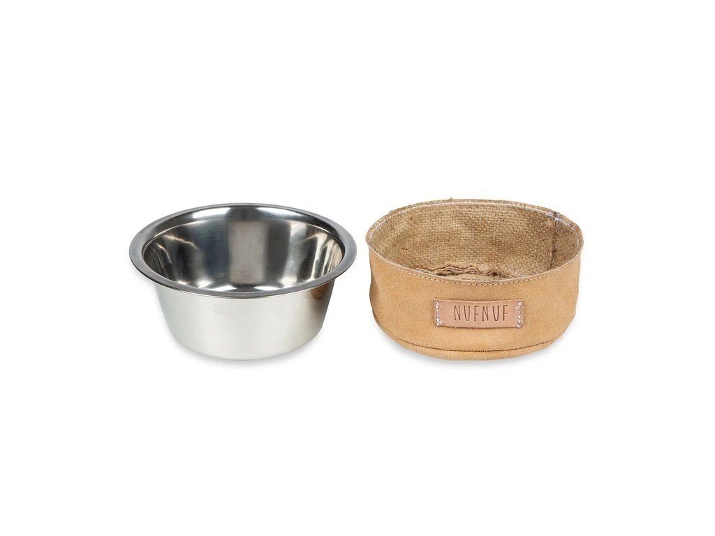 Materiál: miska - nerezová ocel, odnímatelný kryt - 100% hovězí kůže