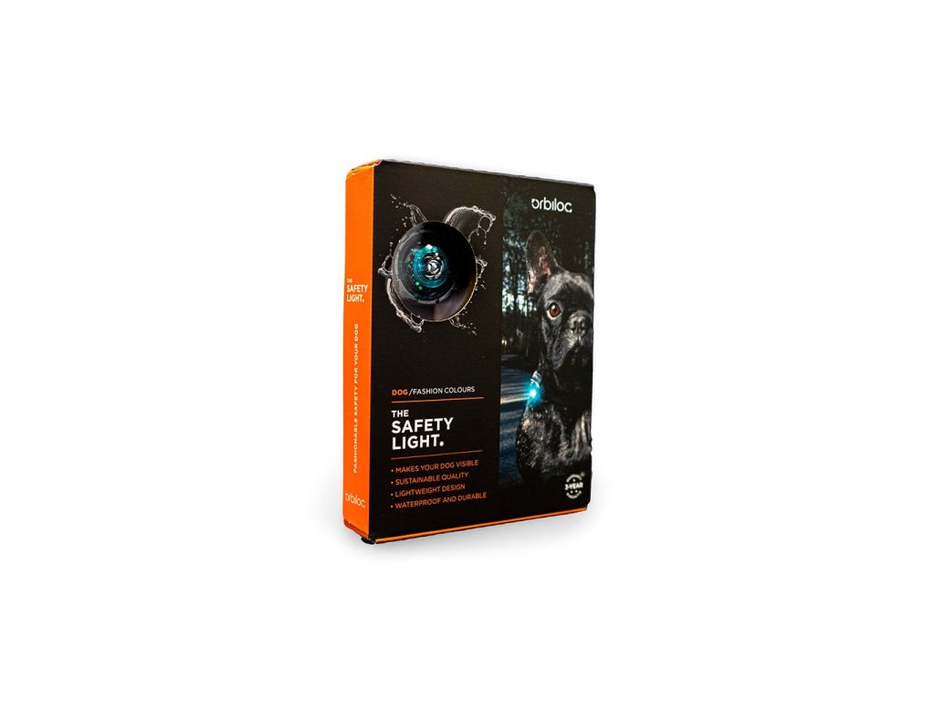 Orbiloc Safety Dog Light. High-tech LED světlo pro psy na obojek nebo postroj. Vyrobeno v Dánsku.