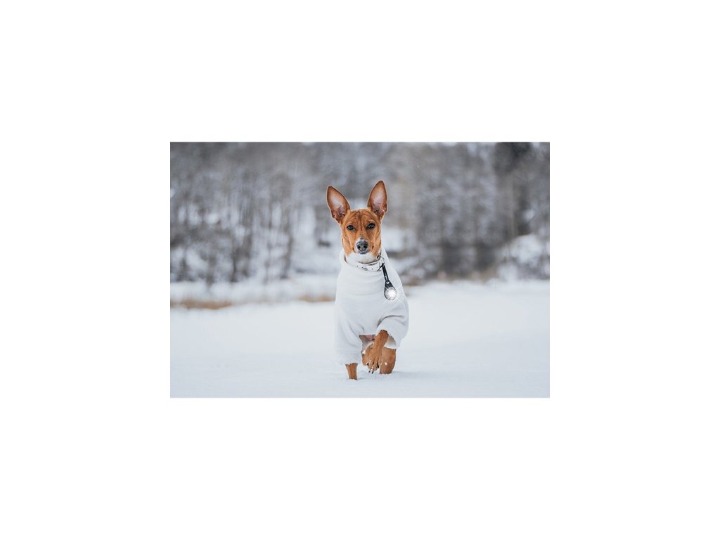 Součástí balení je také nastavitelný silikonový pásek pro uchycení na obojek nebo postroj a vyměnitelná baterie.
