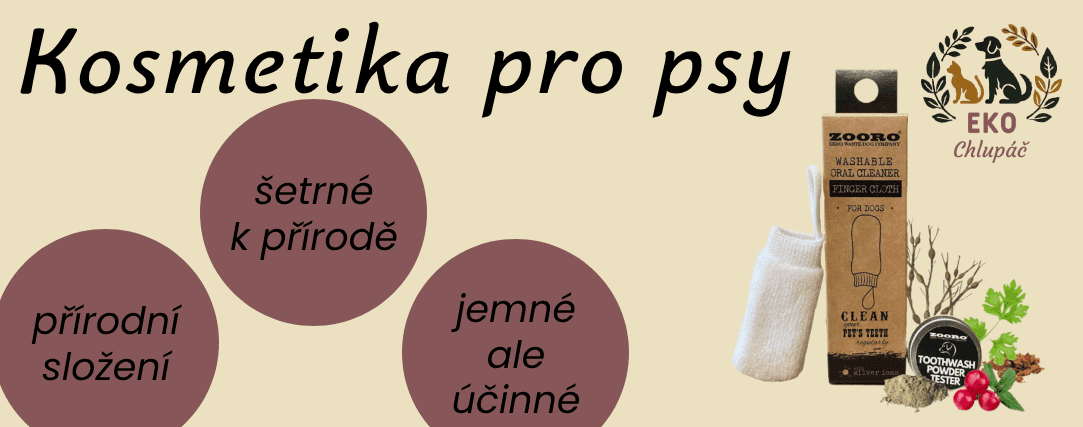 Na EKO Chlupáčovi najdete přírodní kosmetiku pro psy, která je šetrná ke zdraví chlupáčů i k planetě. Přírodní psí šampony a kondicionéry jemně, ale účinně vyčistí srst, zubní pasty se postarají o zdraví chrup a balzámy zase o jemnou kůžičku psích tlapek a čumáčků.