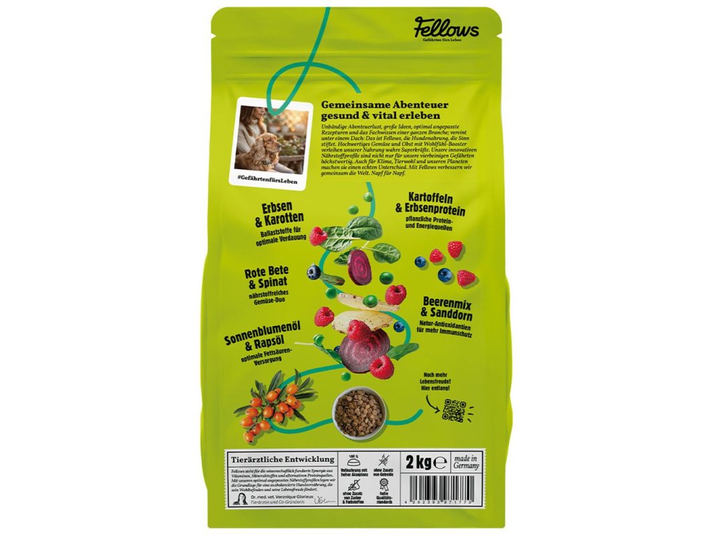 Fellows baví lidi i zvířata, podporuje aktivitu a přináší radost prostřednictvím zdravých, lehce stravitelných a především chutných receptur. Fellows kombinuje tradici a inovaci. Díky jejich zkušenostem a znalostem o síle přírodních ingrediencí se zdravá výživa psů stává hračkou. Receptury obsahují vše, co pes potřebuje, aby zůstal aktivní a zdravý. Fellows používá moderní a udržitelné suroviny, jako jsou super-potraviny a hmyzí proteiny.