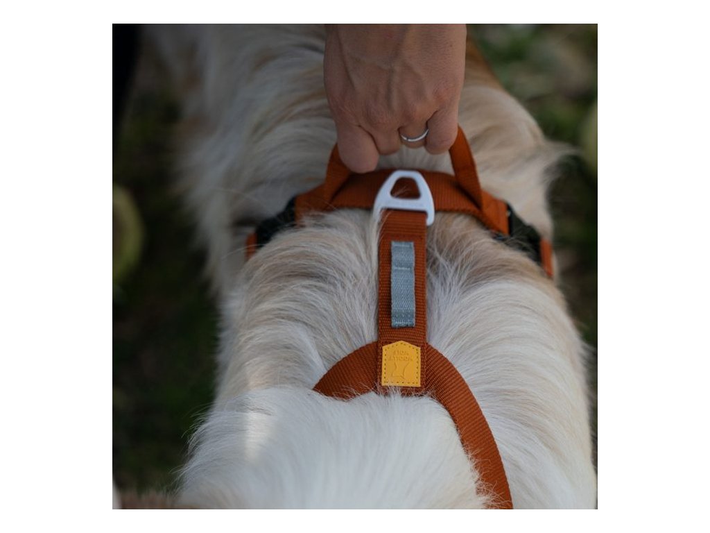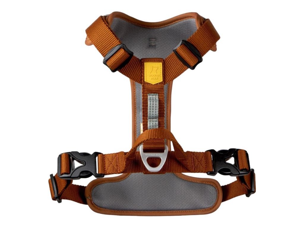 Tento všestranný postroj má dvě možnosti uchycení vodítka: hliníkový V-kroužek uprostřed zad psa pro každodenní procházky a extra silnou přední sponu, která se používá společně se zadním V-kroužkem a slouží k usměrnění psů, kteří na vodítku tahají.