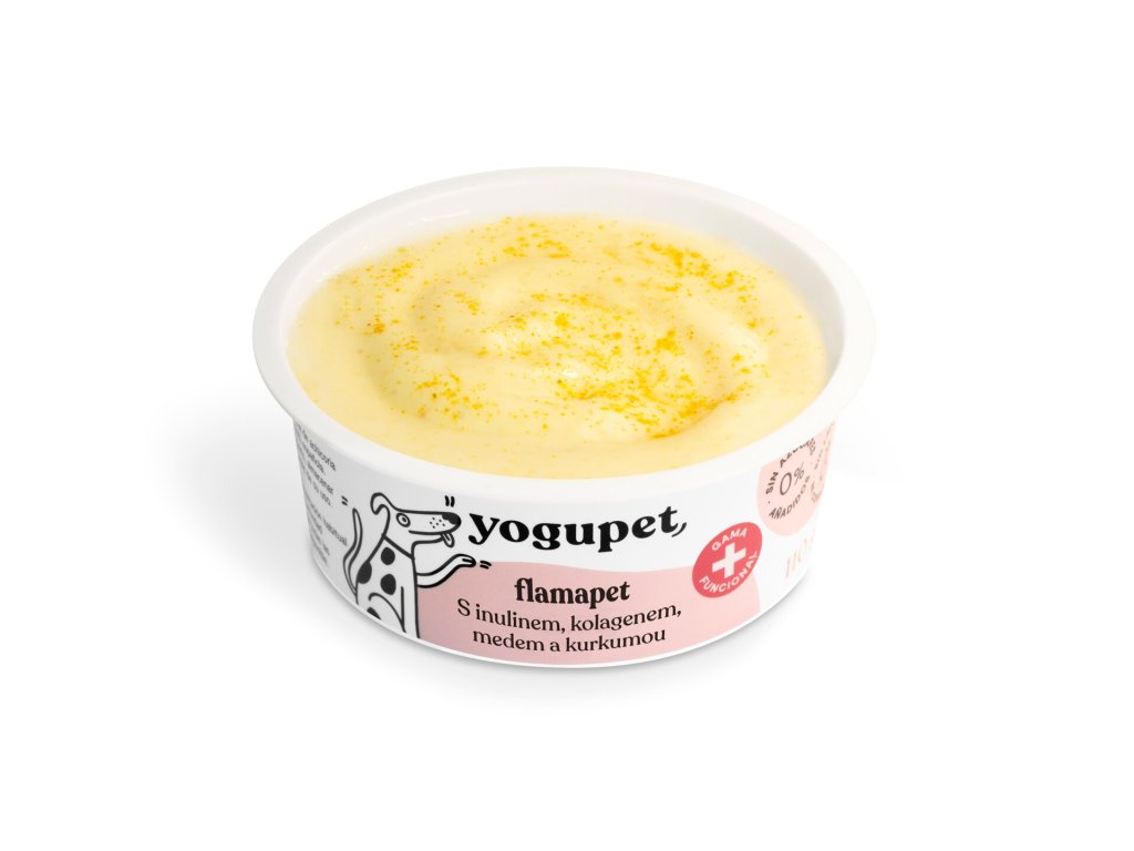 Yogupet Flamapet je pasterizovaný funkční jogurt pro psy s inulinem, kolagenem, medem a kurkumou. Podporuje regeneraci, posiluje organismus a je skvělým doplňkem stravy během i po antibiotické léčbě.